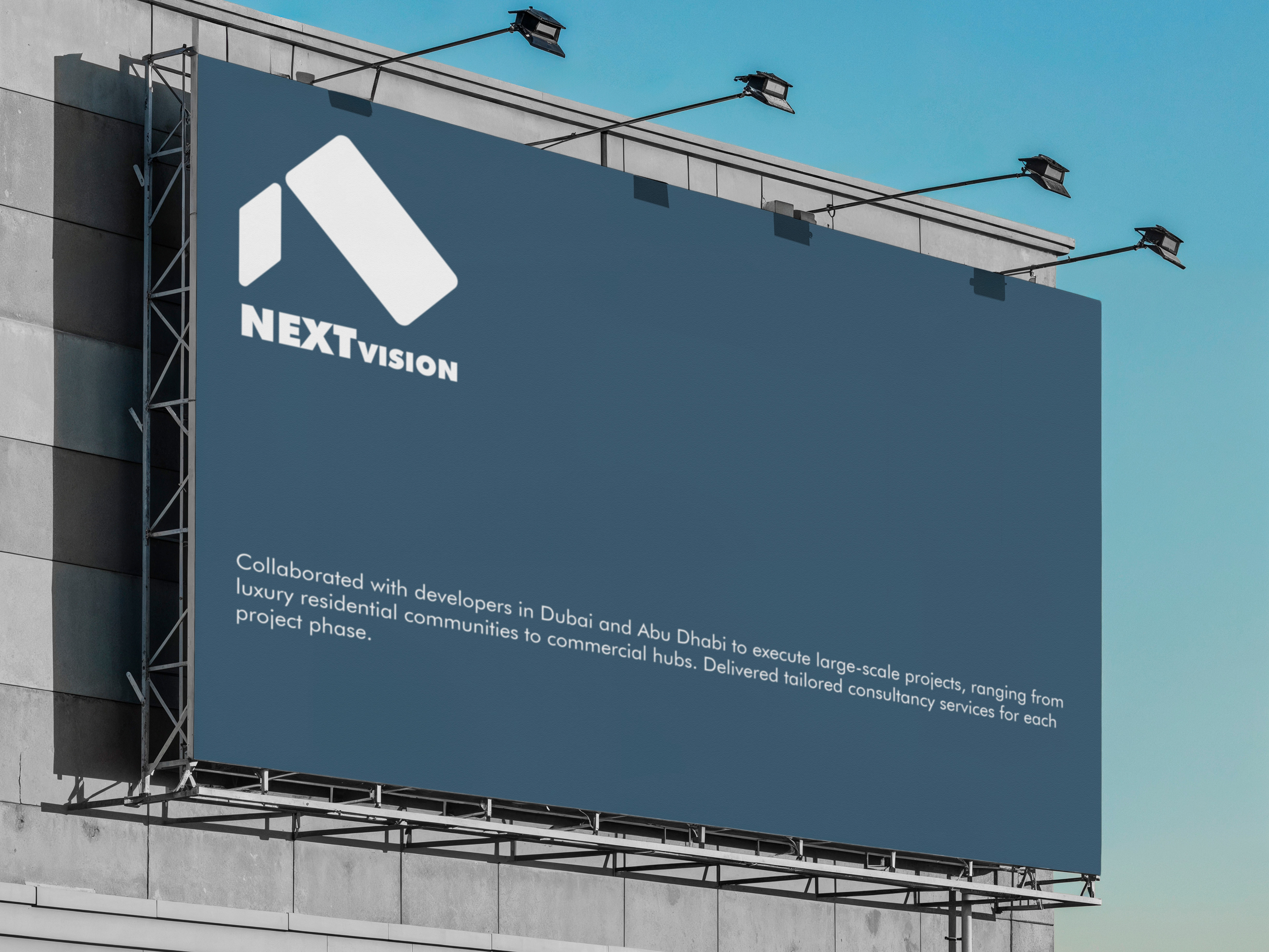 Next Vision is at the forefront of real estate consultancy in Dubai, offering innovative and practical solutions tailored to meet the unique needs of our clients. Our commitment to excellence has established us as a trusted partner for developers navigating Dubai’s dynamic property market Brand & Identity.